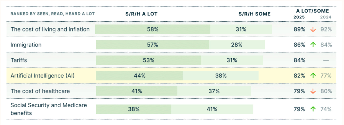 Our polling reveals that AI awareness has reached 82% of the American public. In just the past year, since our last poll, AI went from tech industry buzzword to kitchen table conversation.