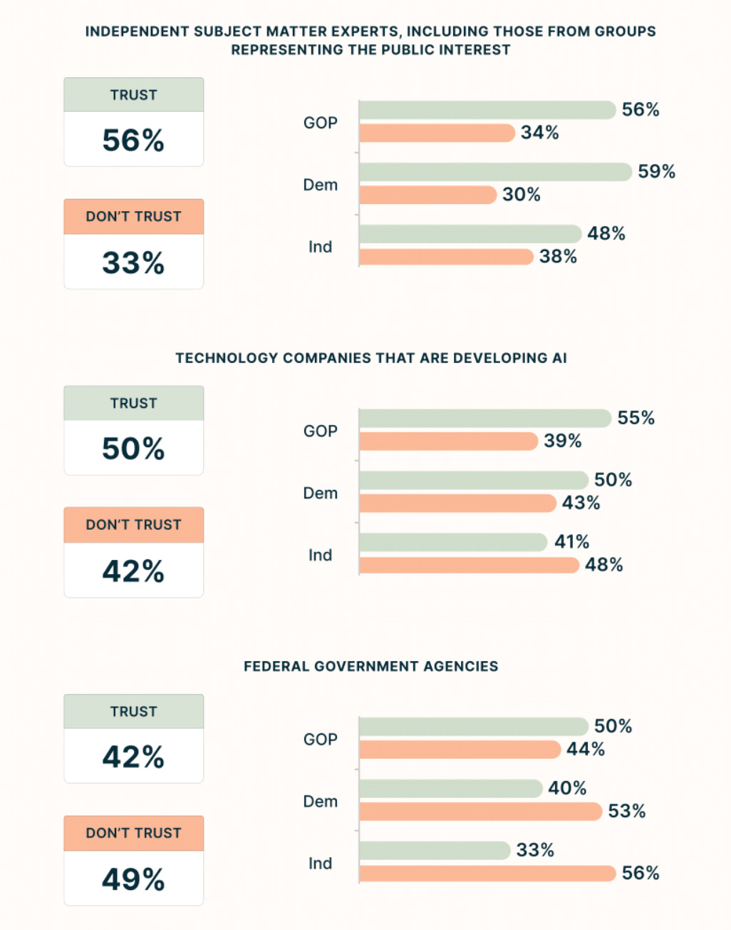 Only 42% trust the federal government to regulate AI effectively. Just 50% trust the technology companies building it. And only 43% trust the two working together on AI governance.